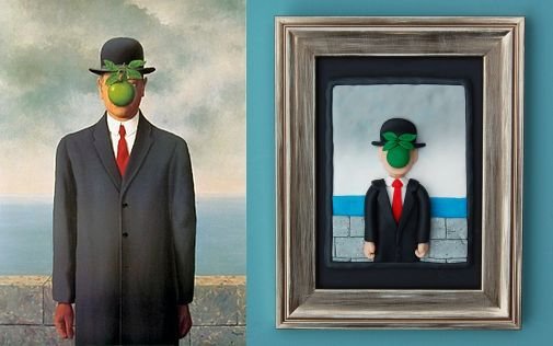 És végül de nem utolsó sorban, René Magritte Az ember fia című festménye is kapott egy humorosabb 3D-s verziót: