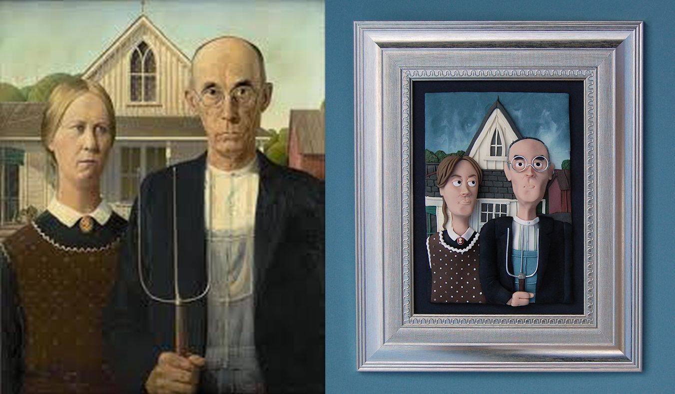2. Grant Wood Amerikai gótika című alkotását már több mémgyár is felhasználta, így nem meglepő, hogy a gyurmás változat sem maradt el: